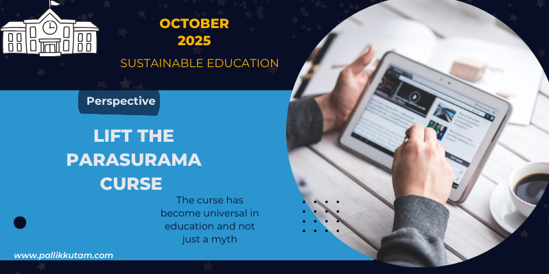 Modern education suffers from a Parasurama Curse, students incapable of confronting real-life challenges, akin to Karna losing knowledge at a critical moment.