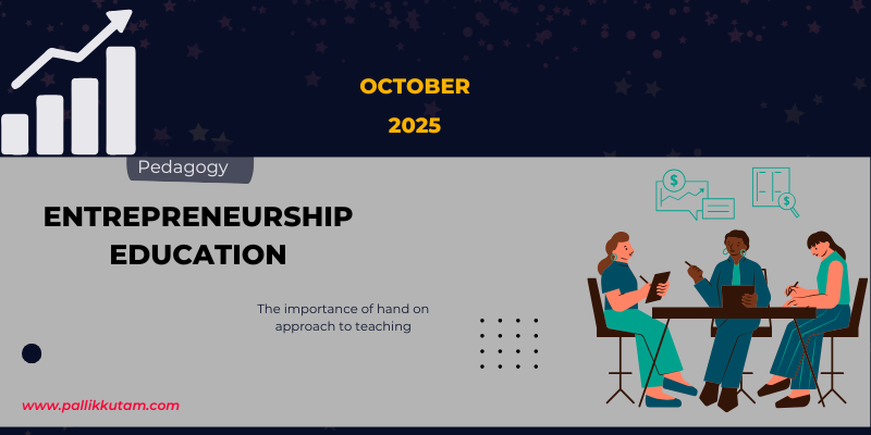 Entrepreneurship education should be taught hands-on, focusing on the Indian context. Idea generation, Design Thinking, Prototyping, & Testing have to be done.