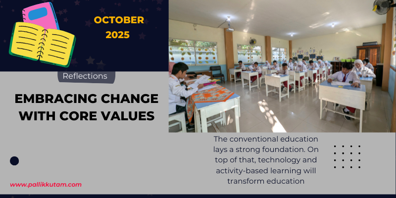 The conventional schooling forms a vital foundation, combining information-centric learning with hands-on activities. Now, teachers & students are co-learners.