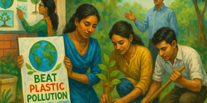Vasudha, the Eco Club of GRDCE Delhi, fosters youth responsibility with activities on ozone, climate, plastic, and green living to ensure a sustainable future.